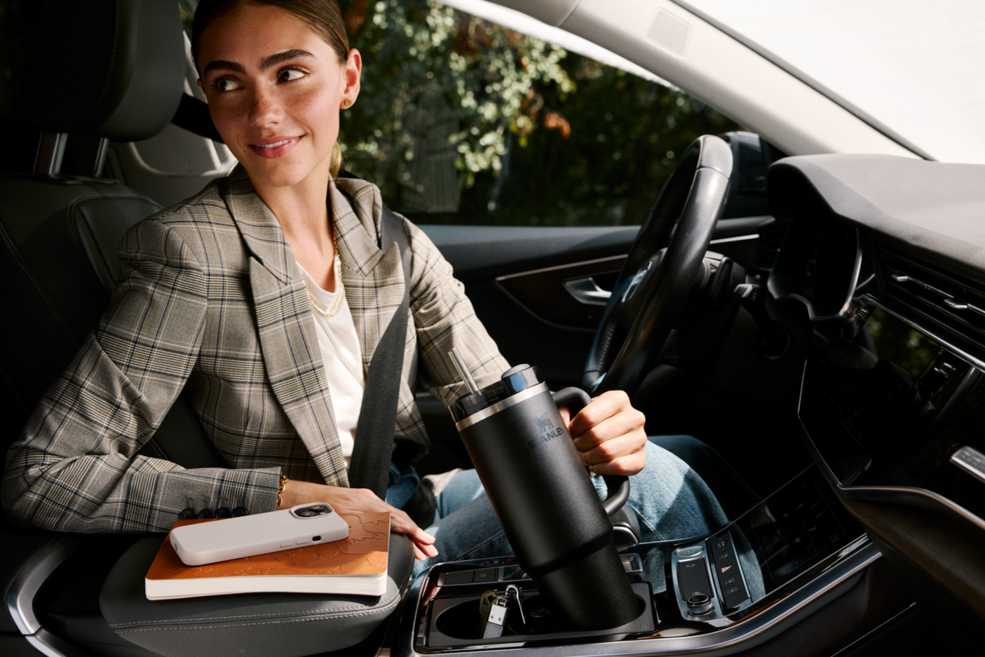 Classic colors feature fresh graphics with a soft texture on the handle and two-tone lid. Your water stays ice cold for hours, thanks to double-wall vacuum insulation. It’s ready to grab by the comfort-grip handle and fits in your car’s cupholder.